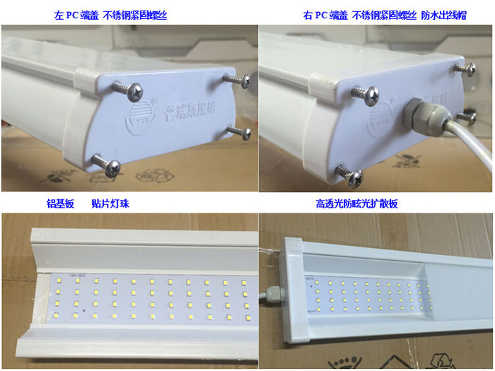一、食品類企業(yè)對照明要求 衛(wèi)生:衛(wèi)生是食品行業(yè)的一個重要參數(shù),明亮的環(huán)境締造出潔凈的形象,黑暗不均勻的區(qū)域創(chuàng)造出不良形象。 高光照度:HACCP要求食品生產(chǎn)工廠各區(qū)域照度標(biāo)準(zhǔn)要求為,車間內(nèi)加工操作臺的照度不低亍220 Lux(出口企業(yè)操作臺照度寵戶標(biāo)準(zhǔn)不低亍500LUX, ),車間其它區(qū)域不低于110 Lux,檢驗工作場所工作臺面照度不低亍550 Lux,瓶裝液體產(chǎn)品的燈檢工作點照度不低亍1000 Lux。 高顯色性、高均勻度:光線不能改變被加工物的本色、不能產(chǎn)生光斑 具備防護性:食品加工時用水量大、空氣濕度高,易產(chǎn)生凝結(jié)水,要采用防水防潮型燈具。傳統(tǒng)的日光燈組成材料是玻璃、水銀等,萬一破損會污染食品,LED三防燈是全密封的燈具無有害物質(zhì),最適合食品行業(yè)使用。 節(jié)能:食品加工行業(yè)的工場很多是長時間運作,有些甚至全天24小時,采用LED節(jié)能燈具能減少電力消耗,降低企業(yè)生產(chǎn)成本。 二、一體化LED三防燈產(chǎn)品規(guī)格及特點 高亮度:普瑞斯LED三防燈燈采用高效LED芯片以及高導(dǎo)熱材料板制造而成,1米中心照度比傳統(tǒng)三防燈(2×36W)高15%。 顏色純正、光照均勻:普瑞斯LED三防燈光顯色性可達Ra70以上,無光斑,光效更好。高顯色性光源易區(qū)分食品可能性混入的雜物。 安全:普瑞斯LED三防燈的主體采用阻燃PVC、無毒、不易碎;不含水銀、鎘等有害物質(zhì);不產(chǎn)生紅外、紫外輻射,防水等級IP65以上,可直接用高壓水槍沖洗。 三、食品廠專用led三防燈結(jié)構(gòu)圖 四、1.2米led三防燈包裝