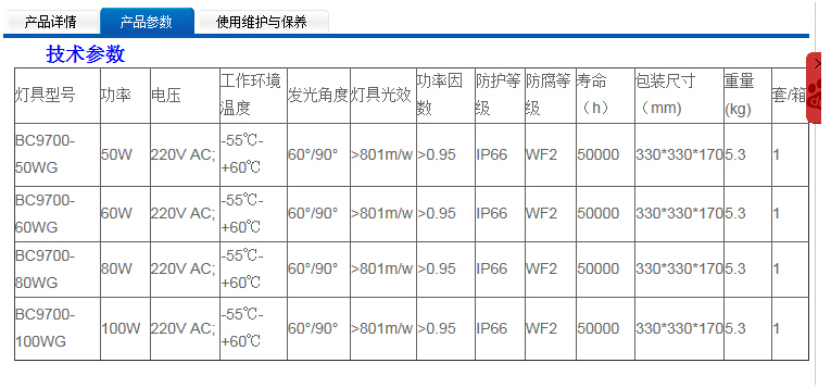 LED防爆燈BC9700 100W,Led防爆燈技術(shù)參數(shù):
