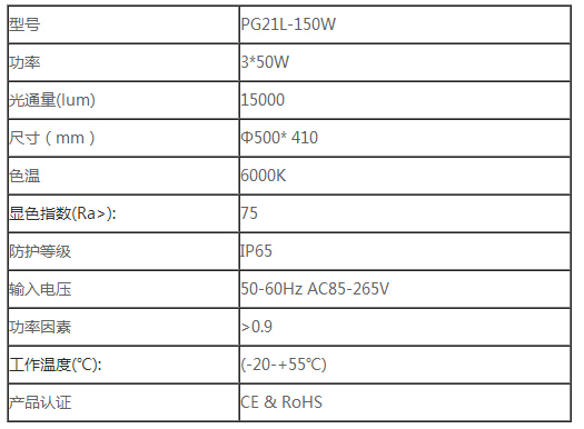 LED工礦燈PG21L-150W技術(shù)參數(shù)