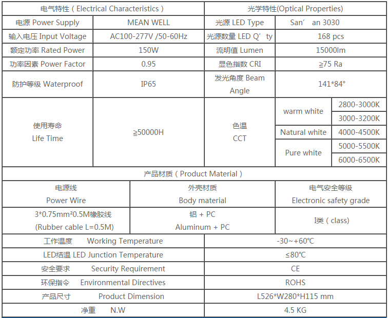 產(chǎn)品規(guī)格(Product Spec):PL29L-150W LED路燈