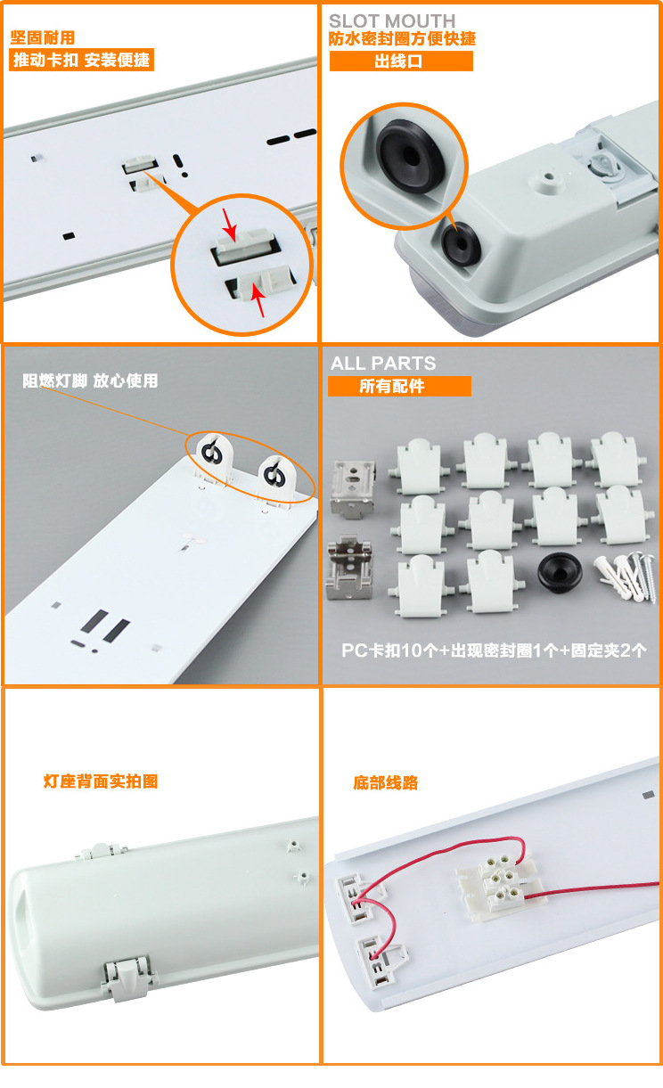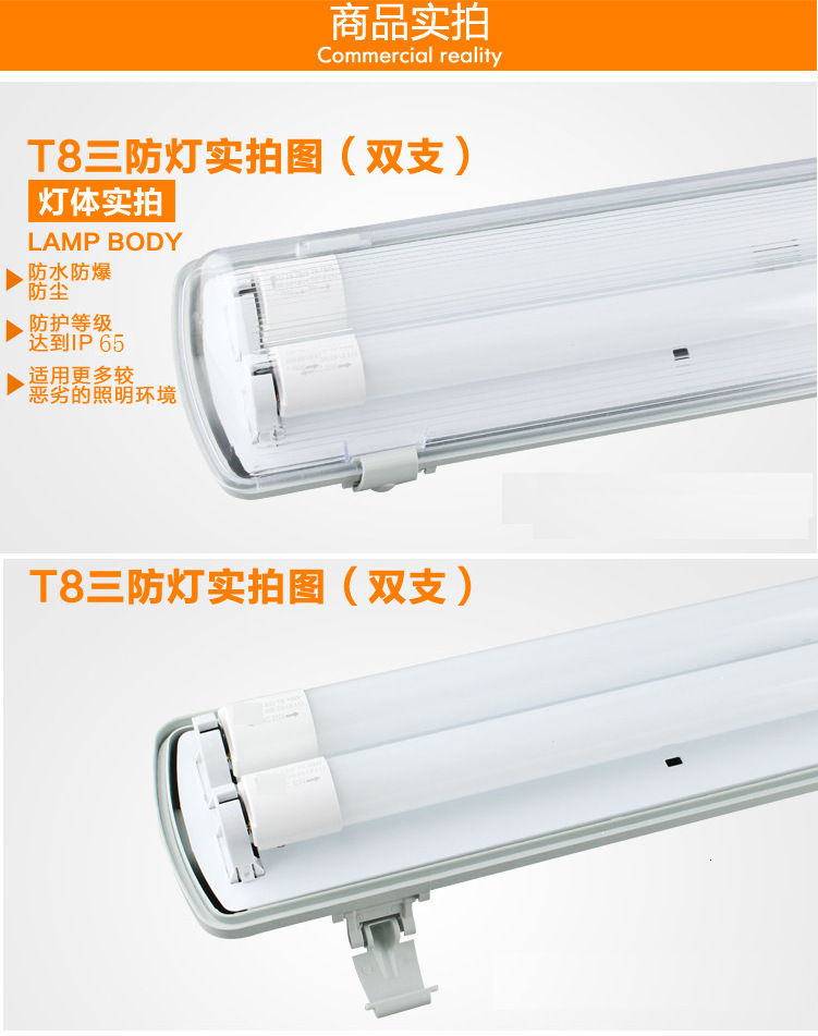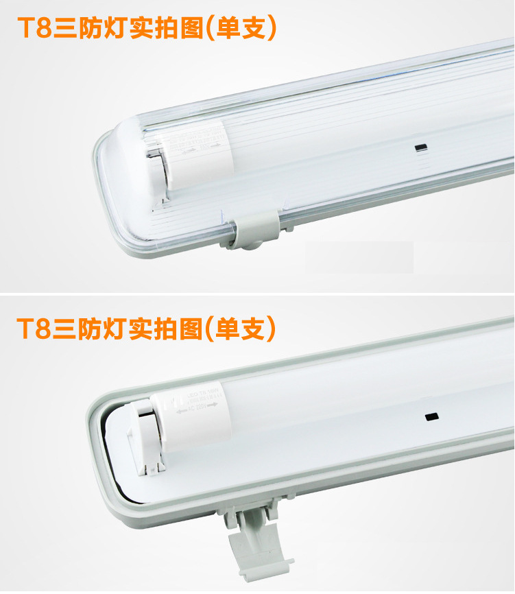 2:T8普通日光燈三防燈具,T8三防燈是一款應(yīng)用比較廣的燈具,是針對(duì)普通日光燈來(lái)設(shè)計(jì)的,有通用性,也是目前應(yīng)用較多的日光燈管。