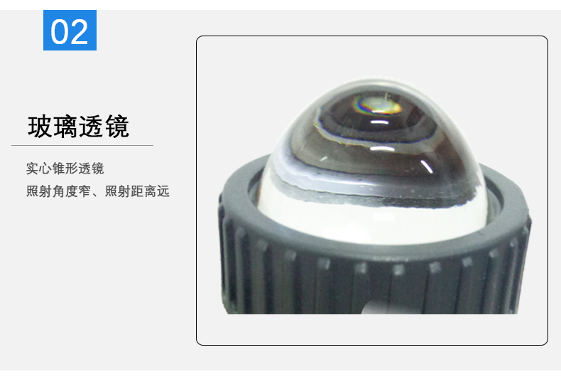 2、實心錐形透鏡,照射角度窄、照射距離遠